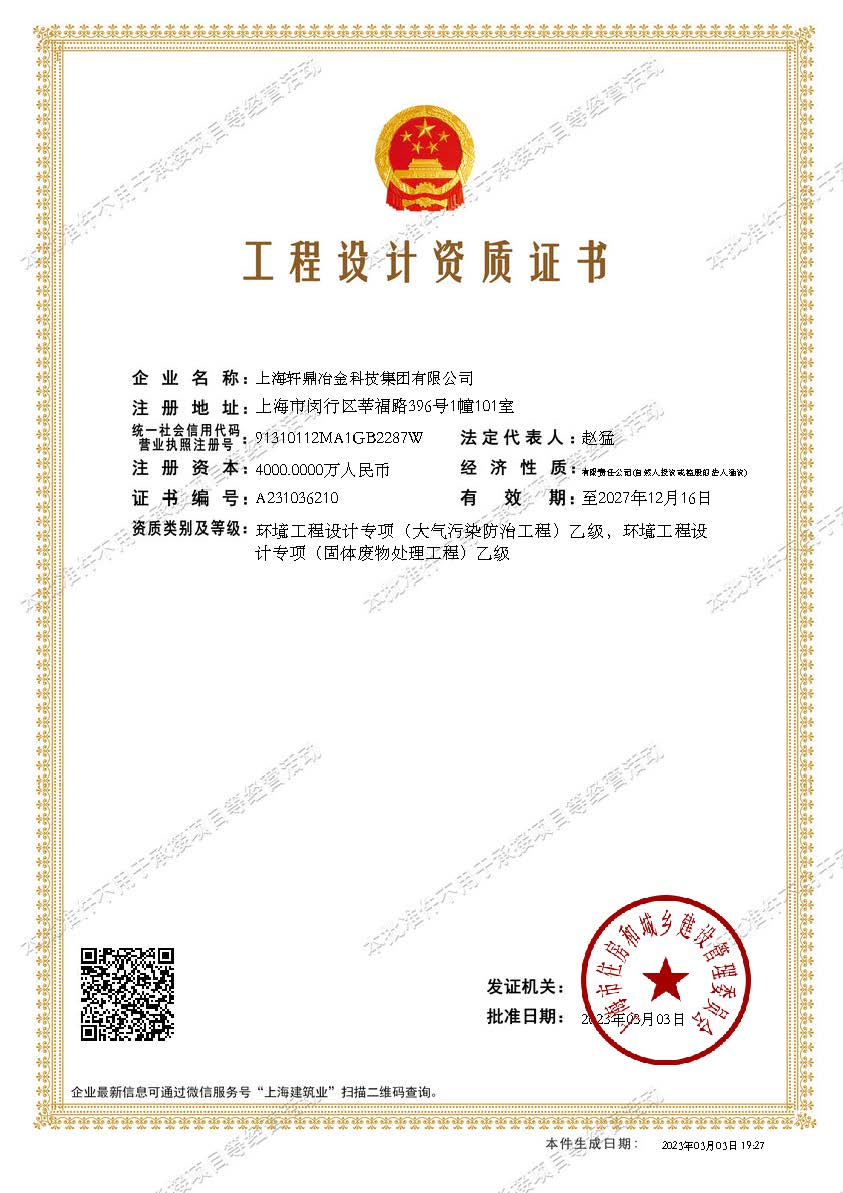 上海轩鼎集团为上海市高新技术企业,拥有环保专项设计乙级,环保工程总承包资质,基于工程技术公司及自有环保材料生产加工基地,可以实现工程项目总承包+核心环保材料供货+副产物回收(或闭路循环)+运维维保等于一体的一揽子解决方案提供商;